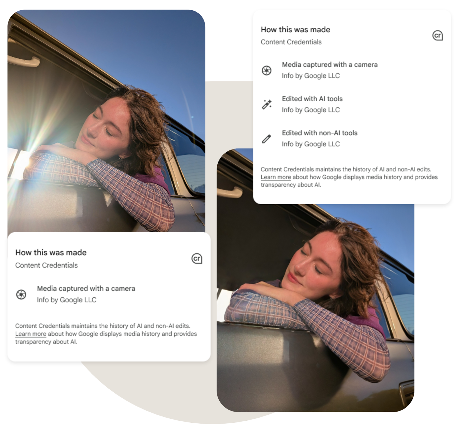 Content Credentials are an industry standard backed by a broad coalition of leading companies for securely conveying the origin and history of media files. The standard is developed by the Coalition for Content Provenance and Authenticity (C2PA), of which Google is a steering committee member.