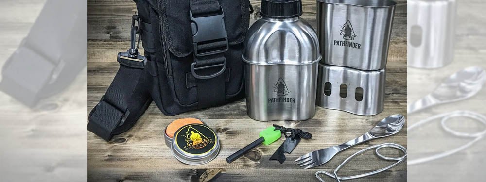 Self-Reliance Outfitters has a wide range of mess kits for sale. There are very affordable lightweight kits that will meet all your needs. We also have kits like the Pathfinder Stainless Steel bottle Cooking Kit. This kit is nearly a survival kit on its own but presents all the tools you will need to cook and eat a meal on the trail.