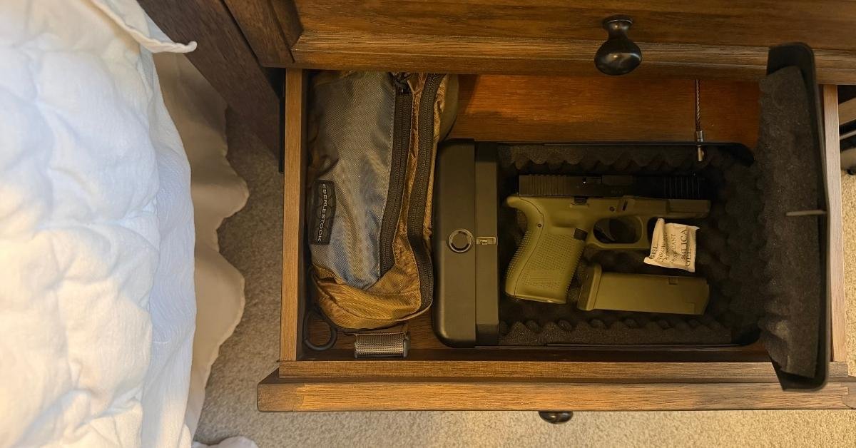 Balance preparedness and convenience with gear positioned in your nightstand. (Credit: Sean Gold)